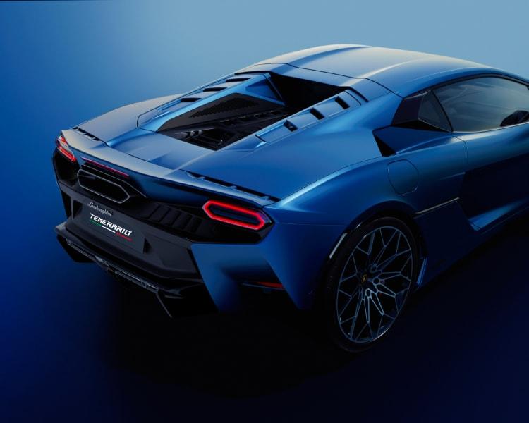 With Temerario, Lamborghini reaches the peak of aerodynamic efficiency, contributing to the attainment of three primary design objectives: high-speed stability, increased cooling performance, and maximum braking efficiency.Lamborghini's engineers started with a white sheet to design the entire vehicle body, both in terms of body and underbody. They also considered the requirements derived from introducing the new hybrid powertrain and the objective of increasing the aerodynamic load, especially at the rear. This allowed them to attain +118% compared to the Huracán EVO, which increases to +158% in the Alleggerita Package version.Each element was designed to combine excellent aerodynamic performance with unique style characteristics, from the front daytime running lights, which become aerodynamic elements due to the air intakes with deflectors, to the roof with a concave profile that directs the air toward the rear spoiler, and the bottom equipped with vortex generators that provide optimum flows toward the diffuser.